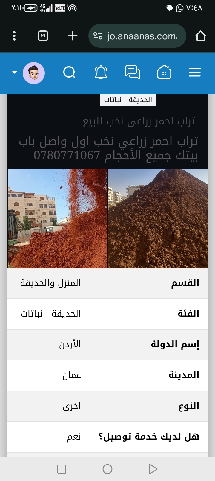 تراب احمر زراعي نظيف للحدائق والاحواض الزراعية واصل لباب بيتك 0788441130