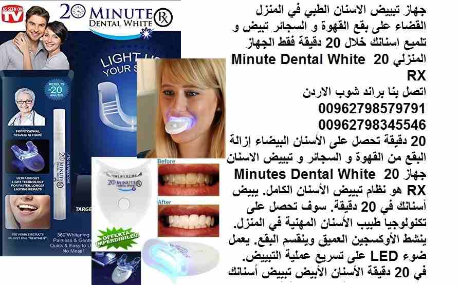 افضل طرق لتبيض الاسنان جهاز تبييض الاسنان | جهاز طبيب المنزل لتبييض الاسنان الطبي في المنزل القضاء على بقع القهوة و السجائر تبيض و تلميع اسنانك خلال 20 دقيقة فقط الجهاز المنزلي 20 Minute Dental White RX 20 دقيقة تحصل على الأسنان البيضاء إزالة البقع من القهوة و السجائر و تبييض الاسنان جهاز 20 Minutes Dental White RX هو نظام تبييض الأسنان الكامل. يبيض أسنانك في 20 دقيقة. سوف تحصل على تكنولوجيا طبيب الأسنان المهنية في المنزل. ينشط الأوكسجين العميق وينقسم البقع. يعمل ضوء LED على تسريع عملية التبييض. في 20 دقيقة الأسنان الأبيض تبييض أسنانك يصل إلى 8 ظلال في 20 دقيقة فقط. تضاف إلى فمك الجهاز وتشغيل الضوء. انها حقا بهذه السرعة وبسهولة! جهاز تبييض الاسنان المنزلي عملي جدا وسريع يوفر جلسات الطبيب المرهقة والمكلفة السعر: 20 دينار اردني تسوق من الموقع الالكتروني http://www.brandshopjo.com شاهد كل جديد عبر الفيس بوك https://www.facebook.com/brandshopVIP متوفر خدمة التوصيل إلى المنزل و الدفع عند الاستلام اتصل بنا براند شوب الاردن 00962798579791 00962798345546 واتس اب: 00962798579791 قادر على تبييض الأسنان بشكل خيالي و بطريقة طبية حديثة وذلك بكفائة عالية تتوازى مع اى جهاز اخر مكلف الا انك تستطيع فعل ذلك وانت فى منزلك بدون اى مصاريف اضافية او ارهاق او تعب - نظام تبييض الأسنان تتمكن من استخدامه بسهولة في المنزل - الاستخدام المتداول تعطيك آخر تبييض الأسنان - غير ضارة لصحتك - يؤدي الــى خفض كبير للحساسية - يساعد على إزالة البقع من القهوة و السجائر و عصائر الفواكه و المشروبات الغازية - المنتج يناسب الــجنــســين - سهـولة استخدامة بسرعة كبيرة